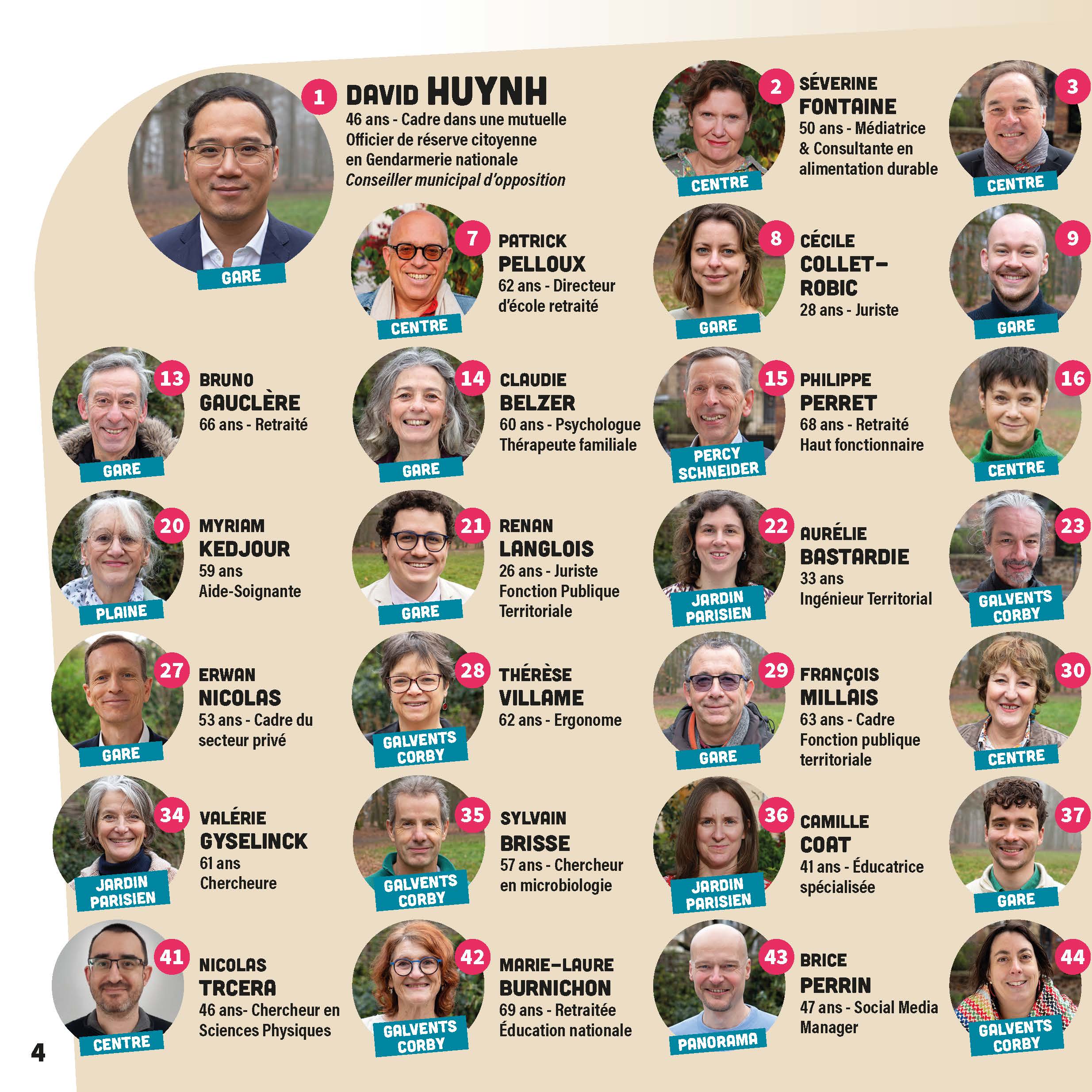 Voici les 45+2 colistiers de la liste Clamart Ensemble, menée par David Huynh dans le cadre des élections municipales 2026 :
