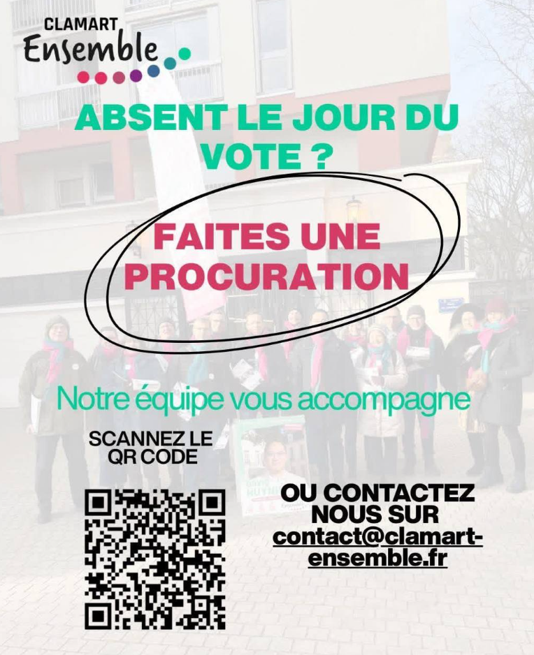 Rappel : vous pouvez porter une procuration pour un Clamartois même si vous votez dans une autre commune, mais vous devrez vous déplacer dans son bureau de vote à Clamart le jour du scrutin.