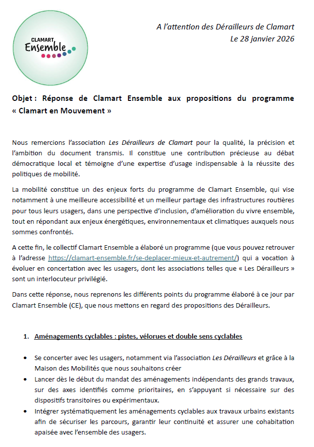 Les réponses de Clamart Ensemble :